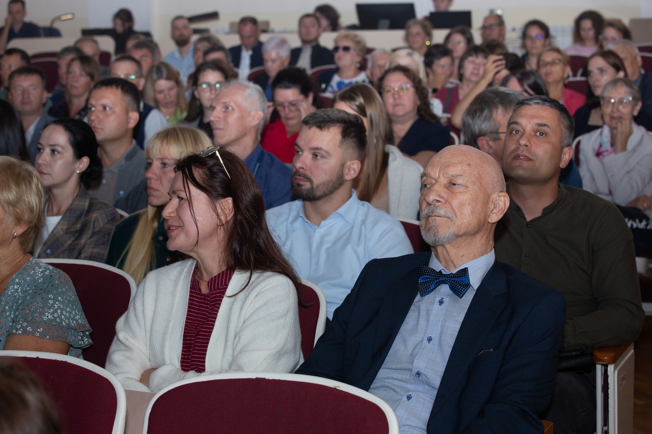 И.Ю. Долматов передал слово для приветствия научному руководителю ННЦМБ ДВО РАН - академику А.В. Адрианову. «У меня есть несколько поручений – из Министерства науки и высшего образования Российской Федерации – нашего учредителя, из Российской академии наук, которые попросили передать всем вам поздравительные адреса», - сообщил Андрей Владимирович. «Мне всегда приятно от нашего учредителя слышать такие слова, что Национальный научный центр морской биологии стал флагманом морской биологии не только на Дальнем Востоке России, но и вошел в число ведущих научно-исследовательских организаций нашей страны. Вы должны гордиться своими традициями, масштабными исследованиями Мирового океана. Министерство желает нам и в дальнейшем продолжать такую работу и выражает искреннюю благодарность всему коллективу, каждому сотруднику за ваш высококвалифицированный труд на благо отечественной и мировой науки. Приветственный адрес от Министерства науки и высшего образования Российской Федерации подписал заместитель Министра Дмитрий Владимирович Пышный. Есть у нас и адрес от нашего профильного Департамента, курирующего наши научные центры – это Департамент координации деятельности научных организаций. Здесь очень много теплых слов и поздравлений, коллеги отмечают, что коллектив не только продолжает дело отцов-основателей, но и уверенно идет дальше, вовлекая молодежь в научные исследования, развивая международные связи. Коллеги выражают искреннюю благодарность коллективу Центра и желают и впредь оставаться флагманом морской биологической науки».